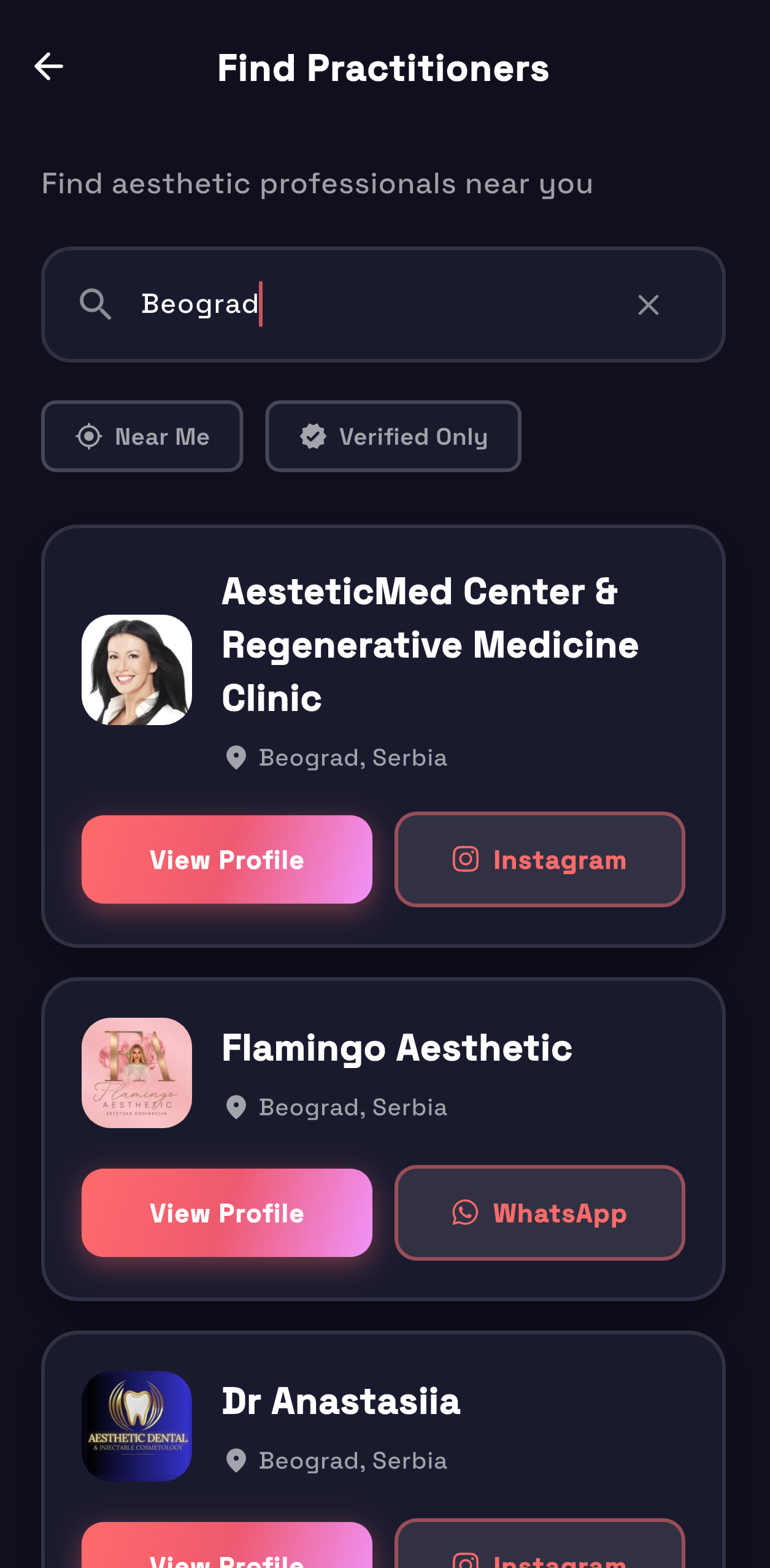 Discover aesthetic professionals near you. Look for the verified badge to find practitioners who use Injektor, ensuring seamless treatment logging and complete transparency.