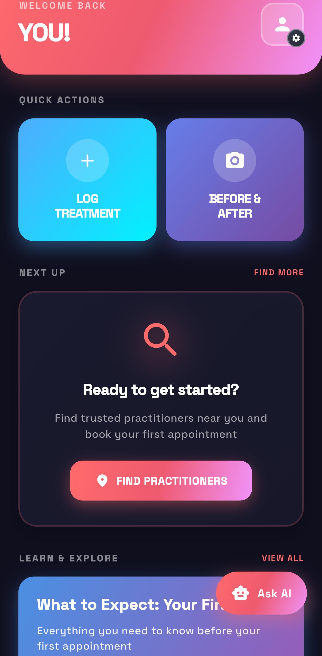 Your personal aesthetic companion that helps you track treatments, compare results, find verified practitioners, and enhance your beauty journey.
