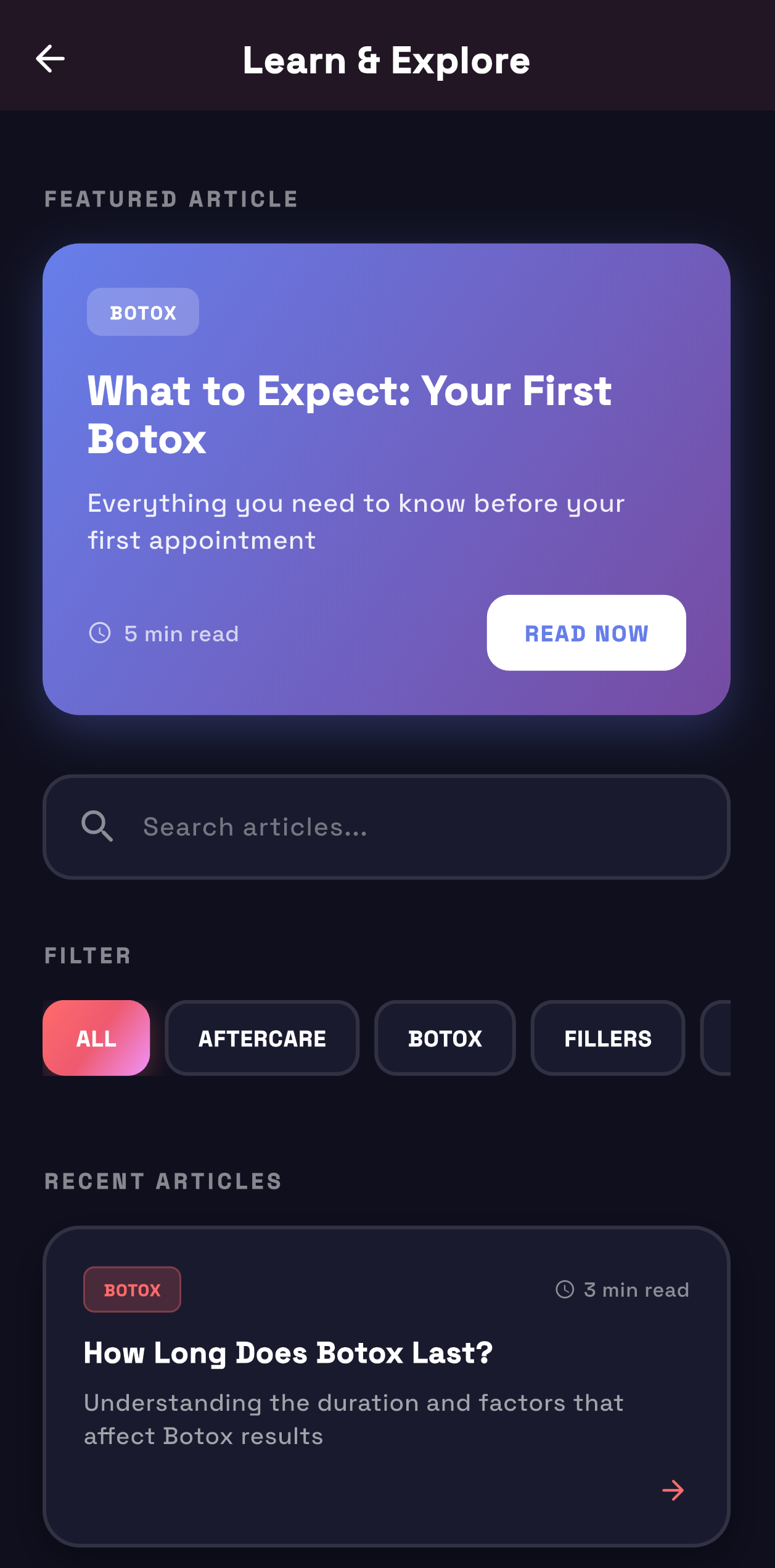 Access expert articles about Botox, fillers, and aftercare. Understand what to expect from your first appointment, how long treatments last, and best practices.